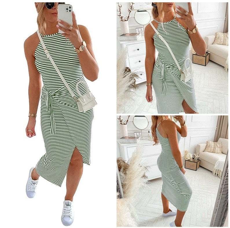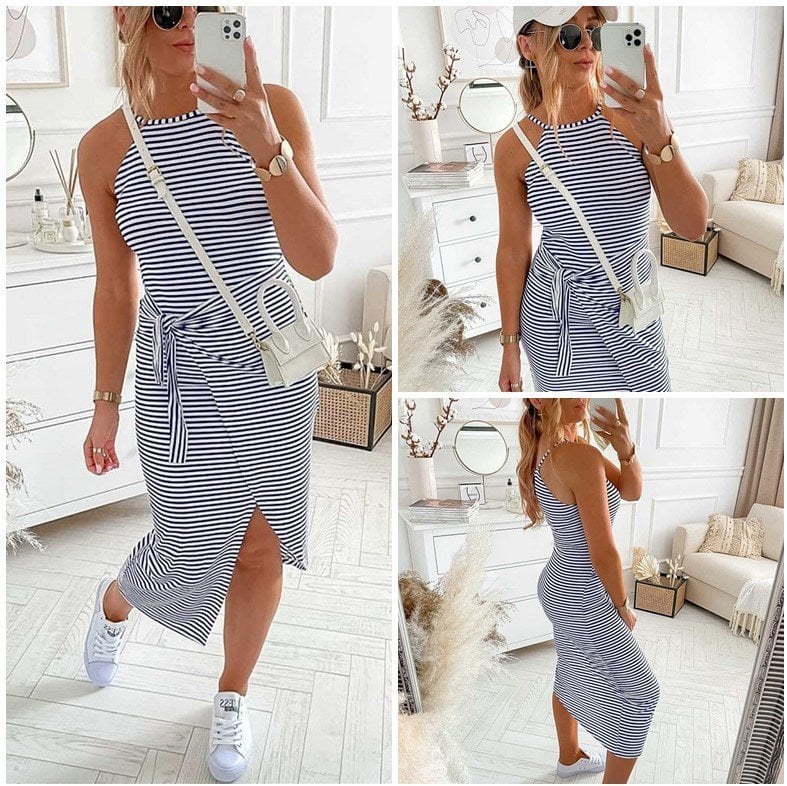- 1 x Casual Sleeveless Striped Midi Dresses
