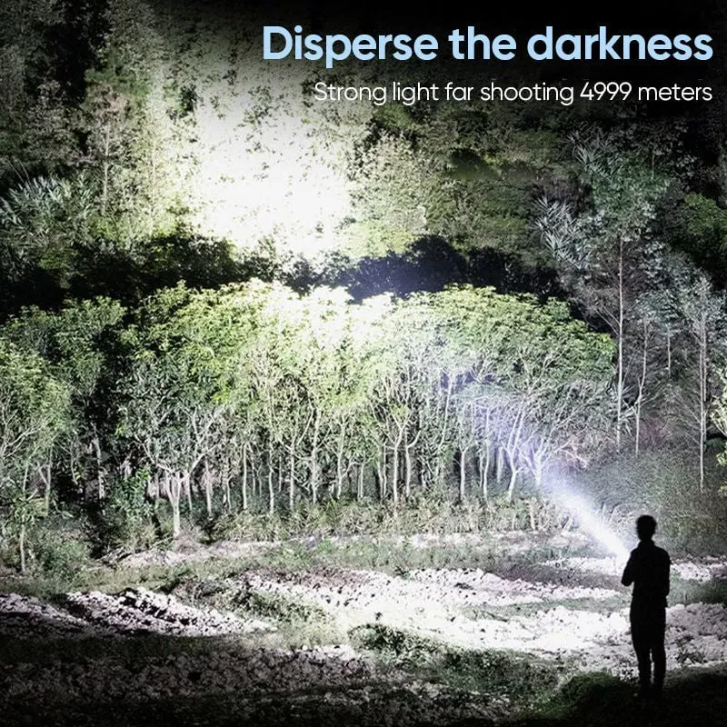 ??e??|[Super Bright Flashlight] The Super Bright Flashlight projects a wide beam of light that easily illuminates an entire room or your garden, illuminating things up to 4999 feet away with great clarity. This flashlight has a top notch lifespan.