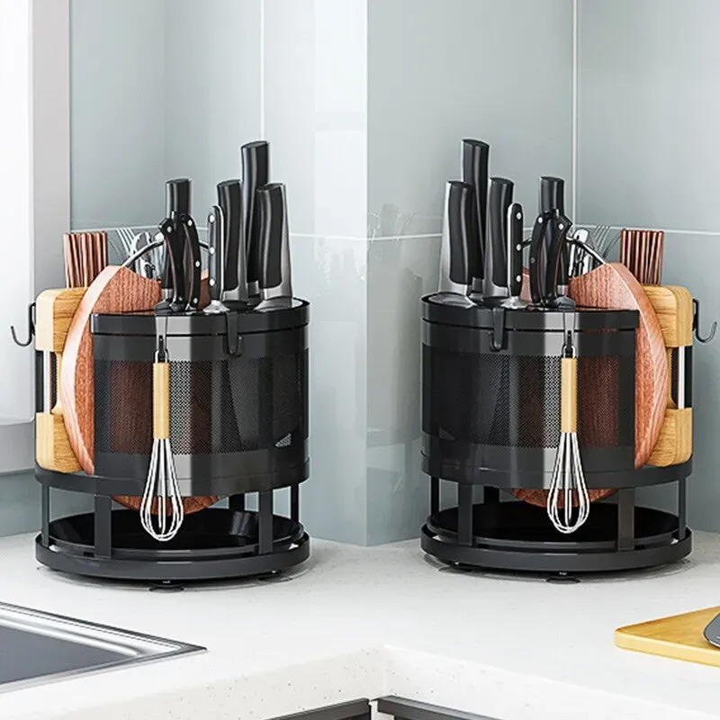 Just rotate and pick what you need. It also comes with a drainage tray to keep your kitchen worktop dry.