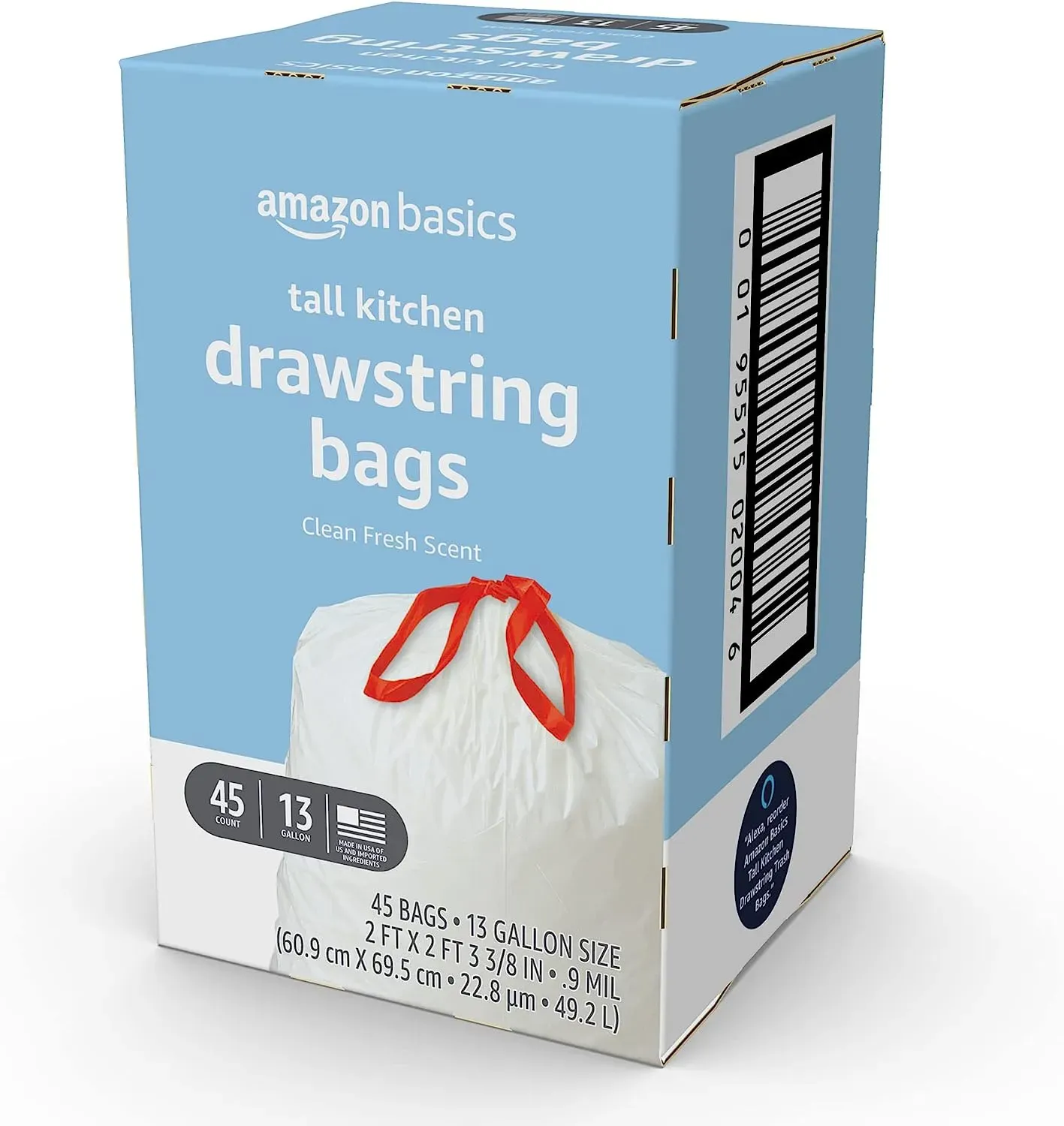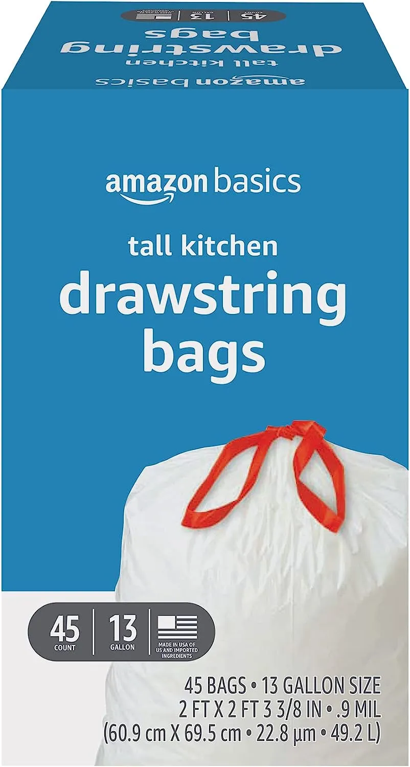 • Amazon Basics Tall Kitchen Drawstring Trash Bags, 13 Gallon, Unscented, 120 Count (Previously Solimo)