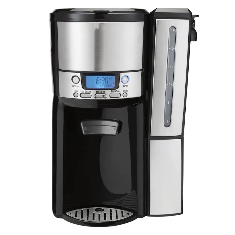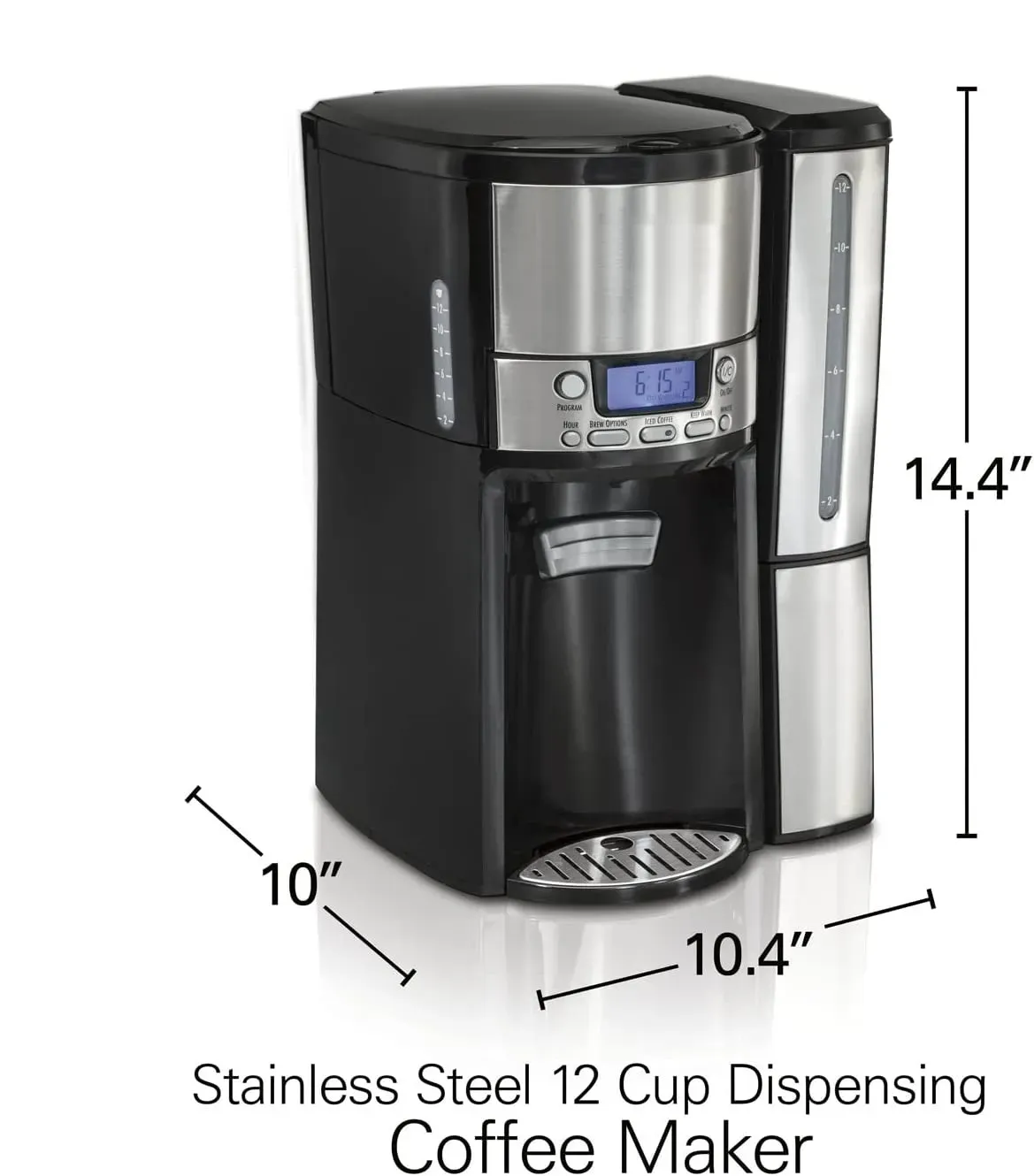 - HOT COFFEE WHEN YOU'RE READY ONE FRESH CUP AT A TIME: The 12 cup coffee maker dispenses hot coffee directly into a cup or a 7' travel mug whenever you're ready for a cup by simply pressing the dispensing bar.