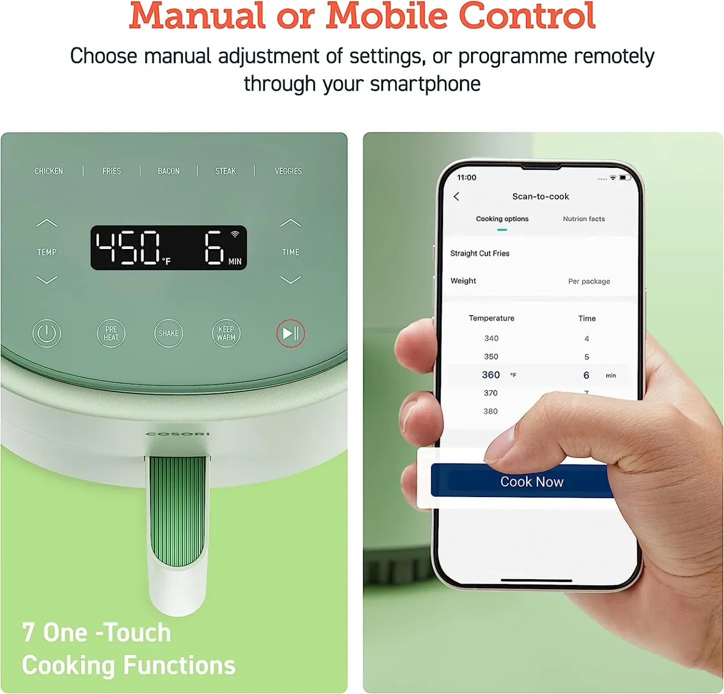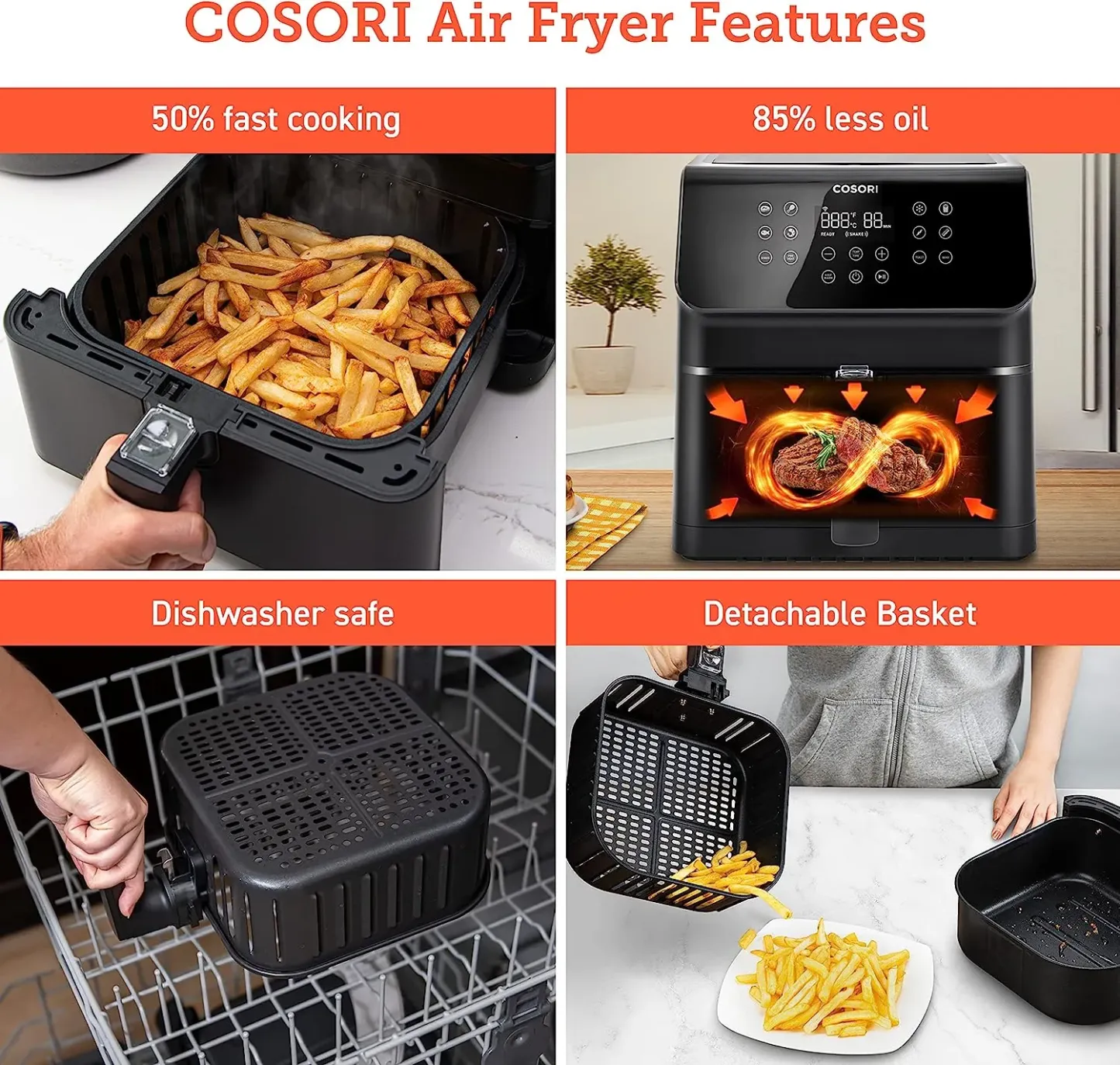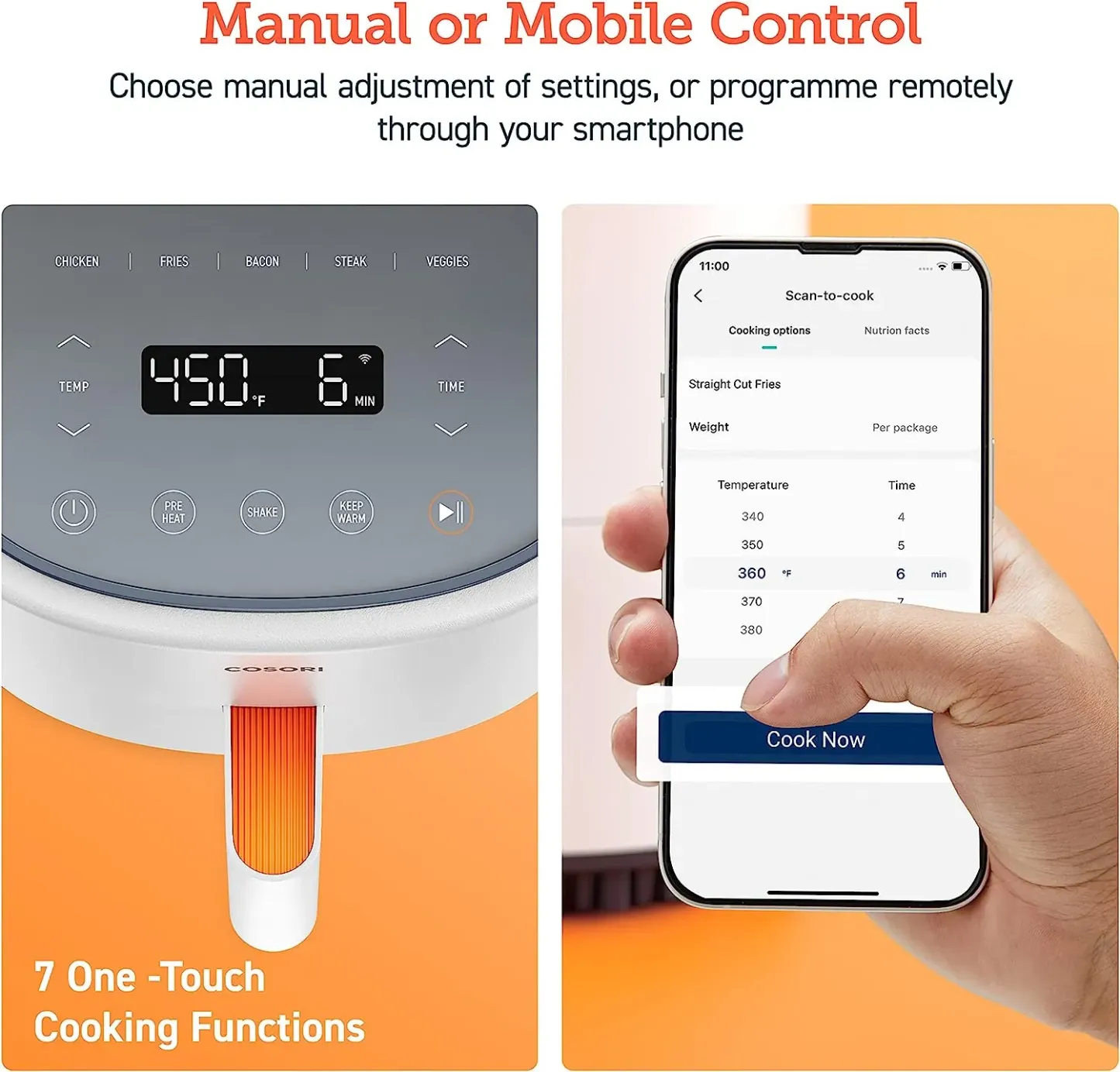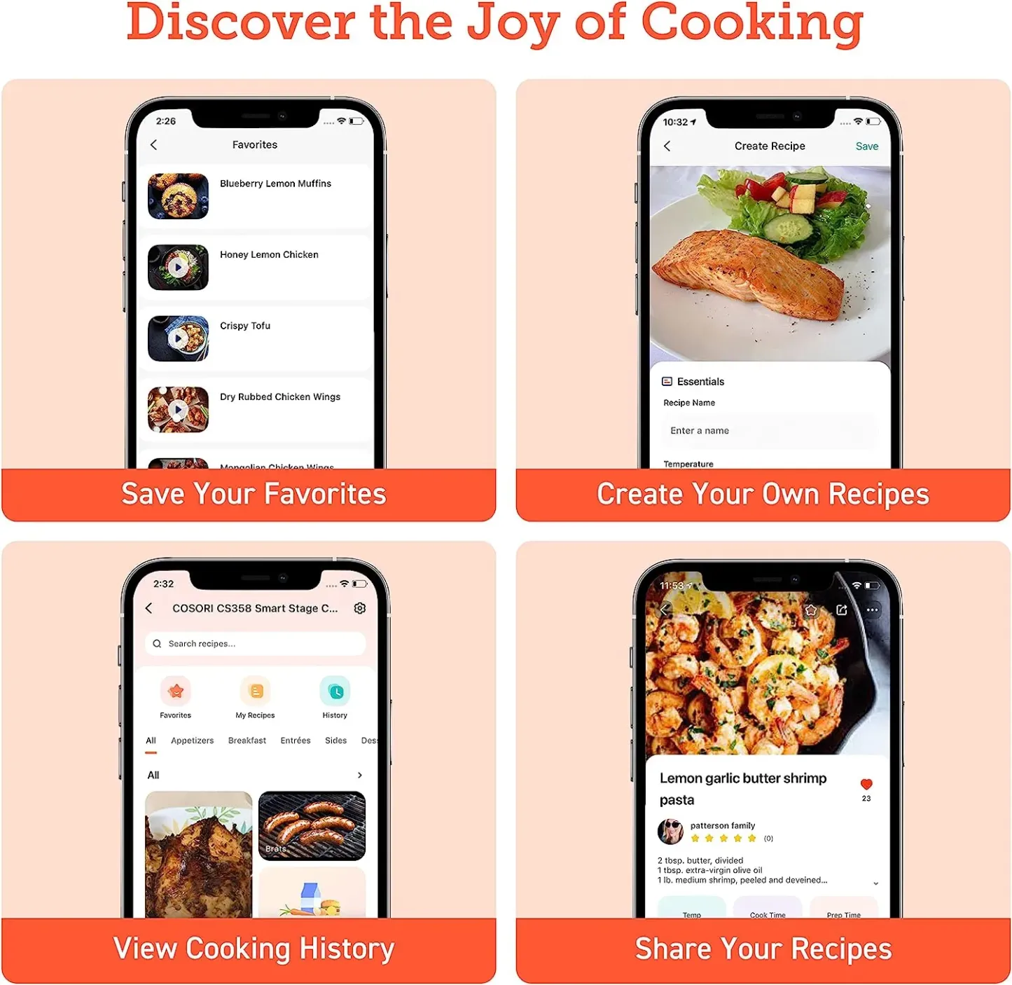 - COOKBOOK & ONLINE RECIPES : Always be inspired to cook with an included cookbook of 30 original recipes by Cosori R&D chefs and 100+ recipes on the free VeSync app. You’ll be cooking like a pro in no time