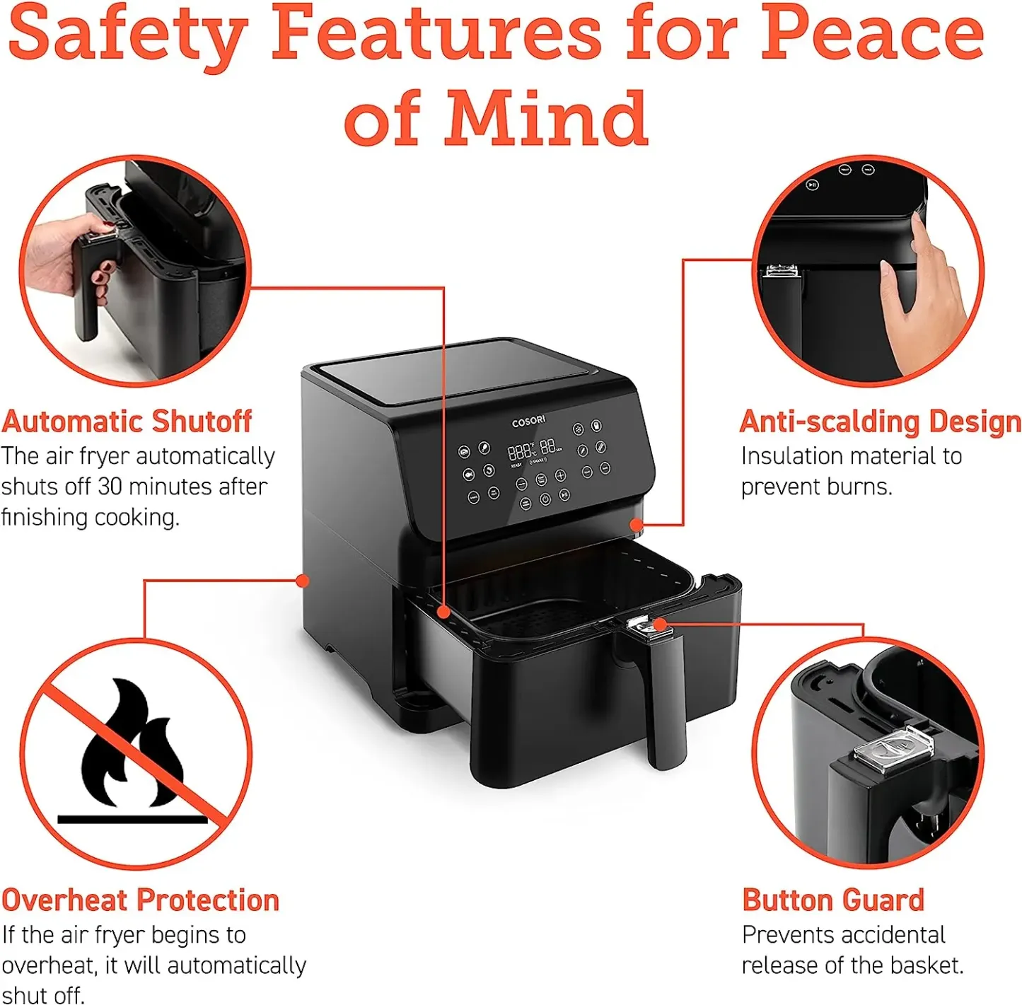 - EASILY PURCHASE ACCESSORIES: Search 'B0BSFNTD3N' to find the COSORI air fryer disposable liners for 5-6Qt air fryer, 'B07QHSZGXC' to find the original COSORI accessories set