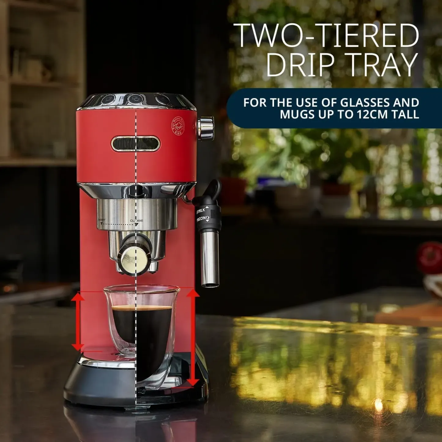 The Premium Adjustable Frothing Wand lets you easily customize foam and steam levels: dryer foam for cappuccino and micro foam for latte.
