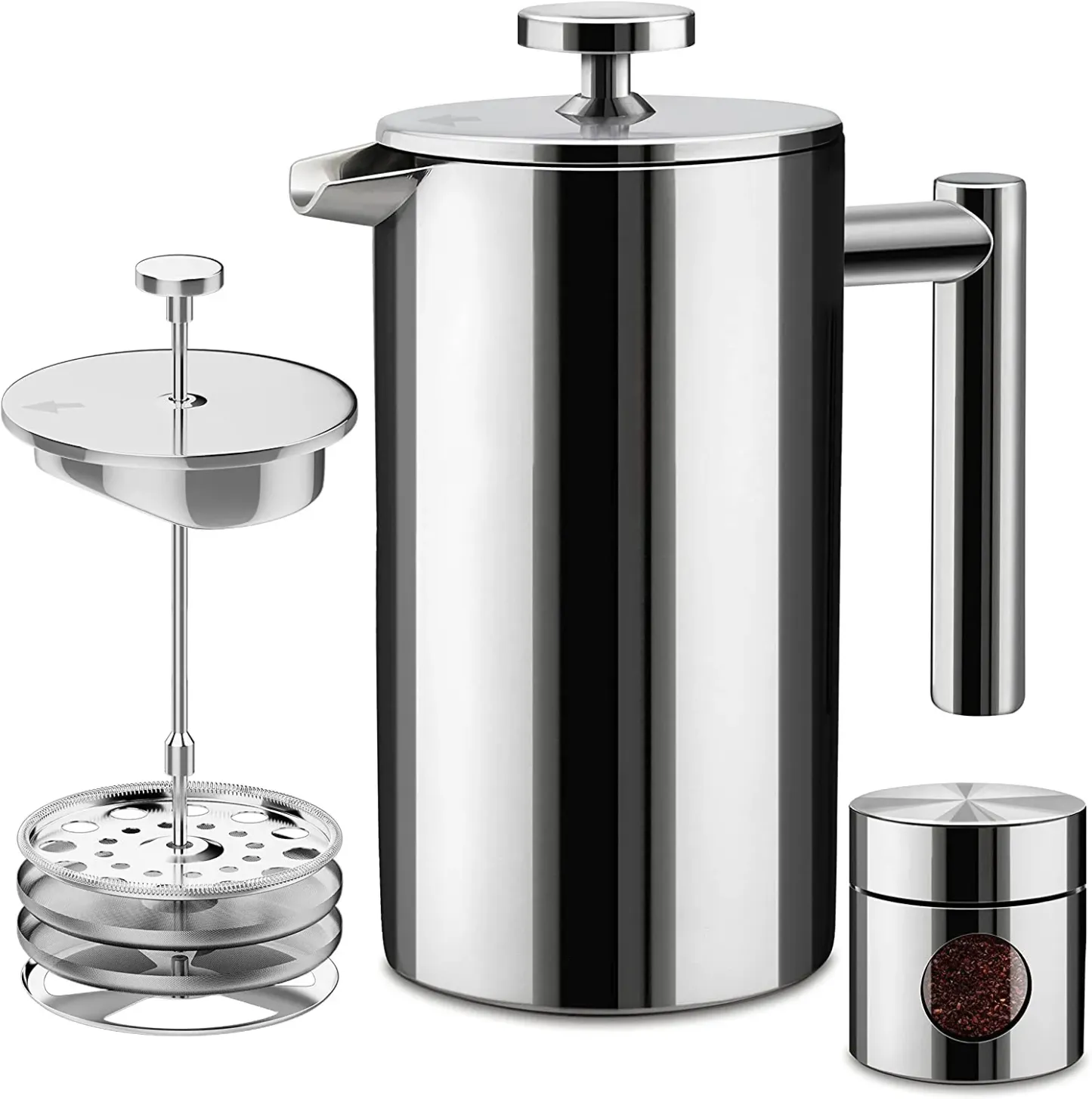 - If you really care about your coffee – We tested enough mechanisms and filters to make your head spin to tweak and uniquely design our press with a triple layered filter structure to stop the sediment, but let the yummy coffee oils through for a full-bodied delicious brew that will make you a very happy camper. And to share the love, we give you a bonus matching travel canister that holds enough beans or grounds for two full batches.
