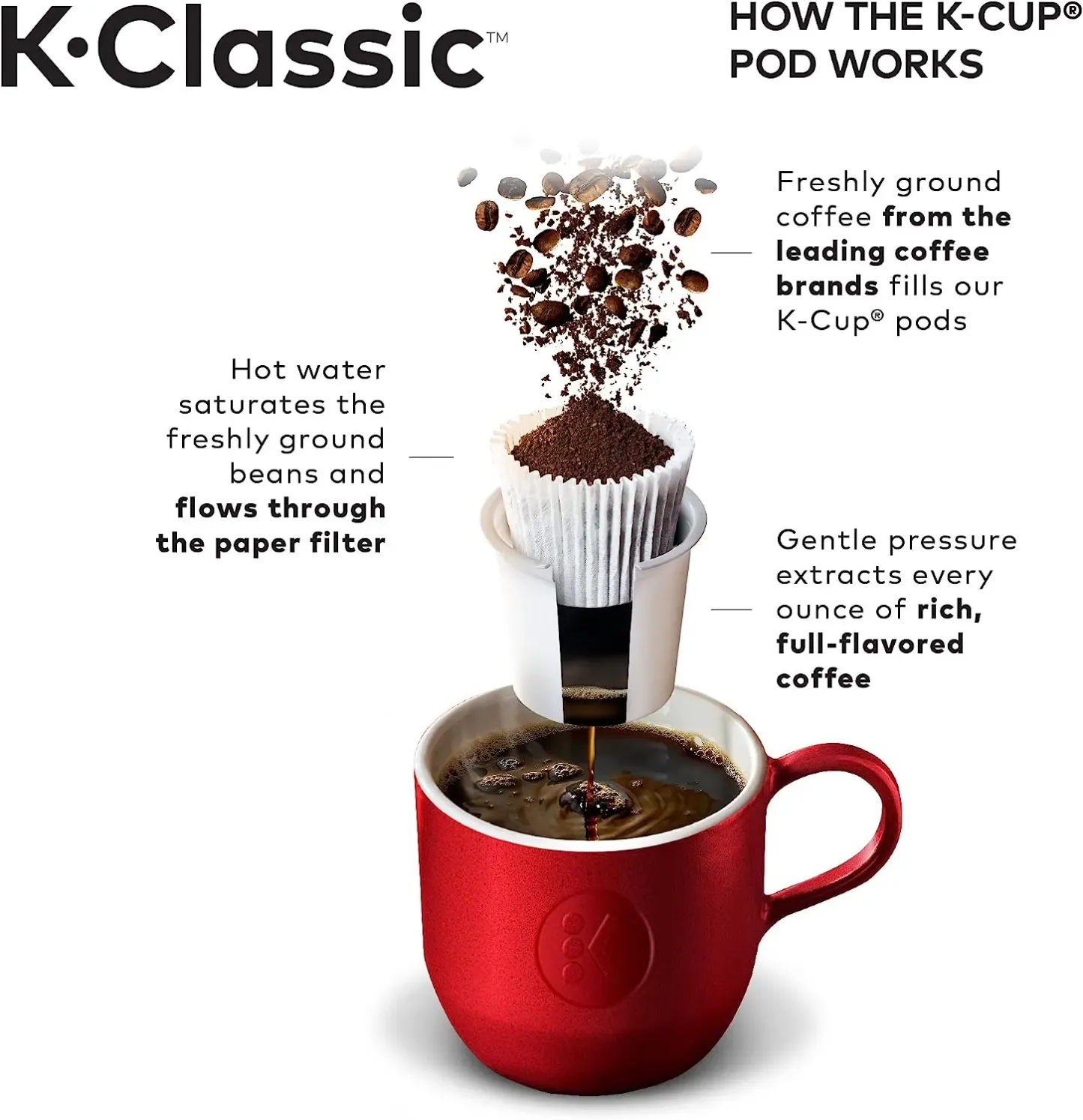 - Brews multiple k-cup pod sizes: (6, 8, 10 ounce) – the most popular k-cup pod brew sizes. Use the 6 ounce brew size to achieve the strongest brew.
