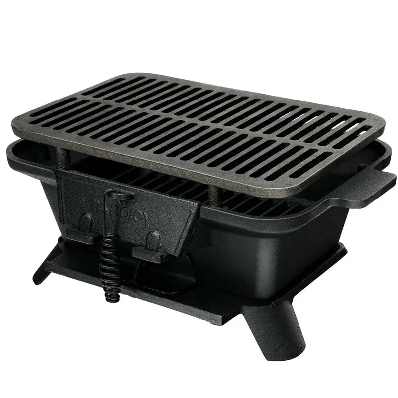 - Compact Size & Easy Installation: Measuring 15.5'x10.5'x7' (L x W x H), this portable cast iron charcoal grill has a convenient and space-saving way to store and transport. Other than that, all parts are included for easy assembly. Furthermore, both grilling net and charcoal net are detachable so as to be easily cleaned up.