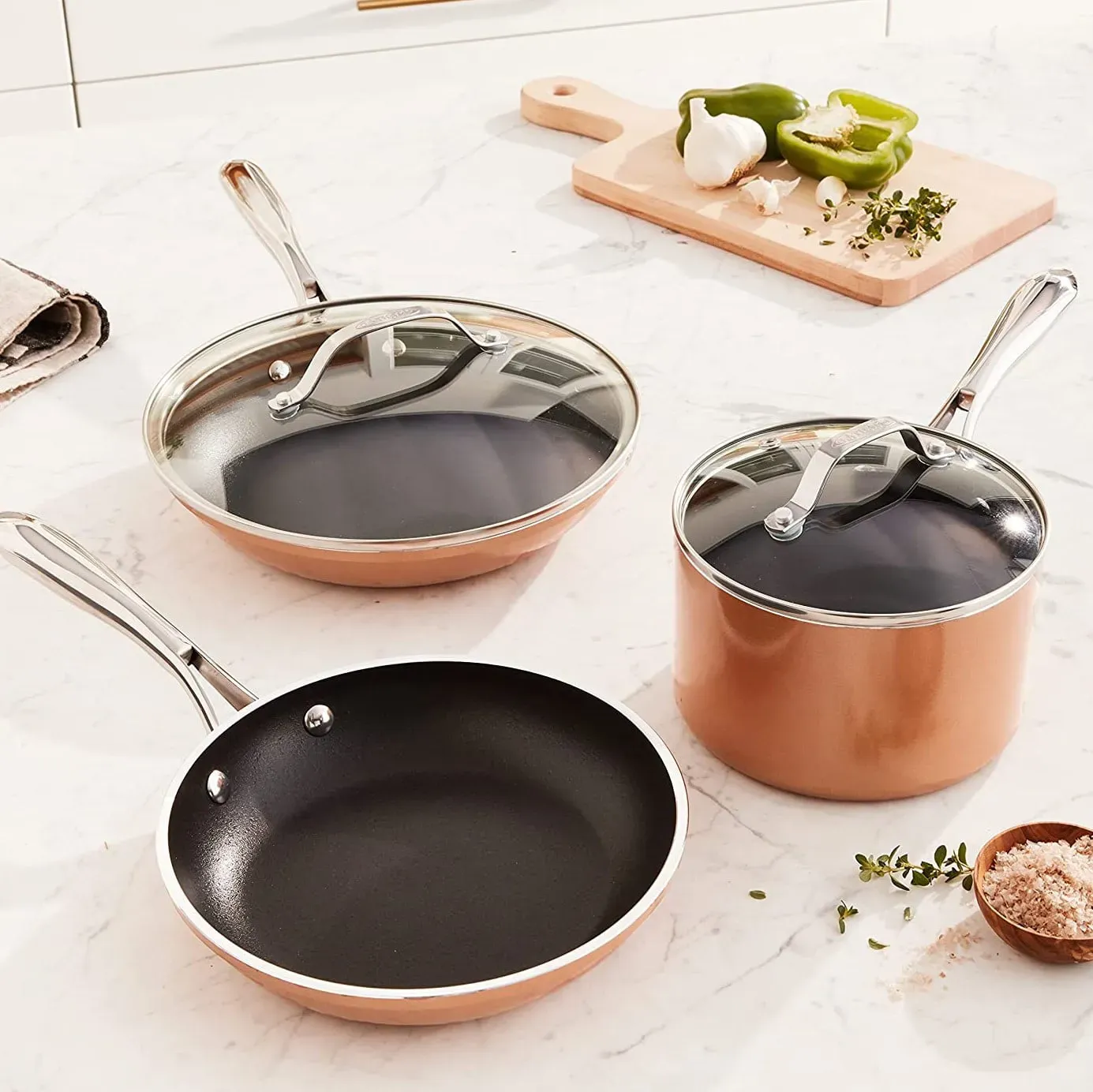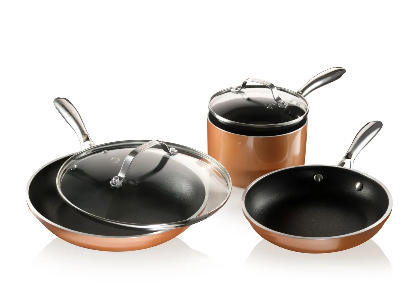 Steel Copper Cast 5 Piece Cookware Set Non-Stick Pots and Pans Set Dishwasher & Oven Safe