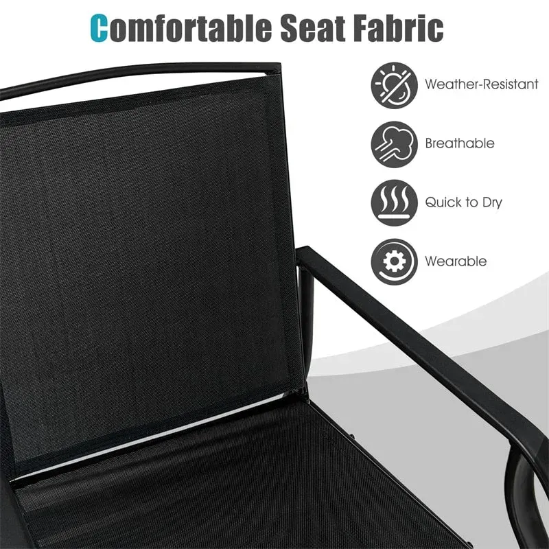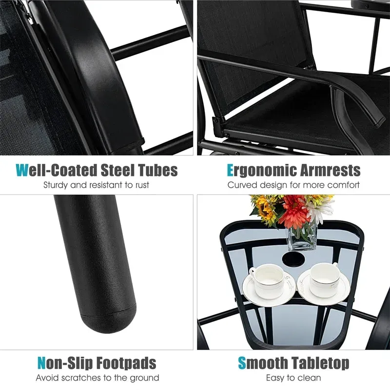- Smooth 2-Person Outdoor Glider Chairs: This double porch glider chair enables you to enjoy smooth and gentle swinging back and forth, and each chair swings independently. Furthermore, the 2-seat patio glider chair set with a glass table is designed with curved armrests and backrest, bringing you much more comfort and effectively relieving your fatigue.