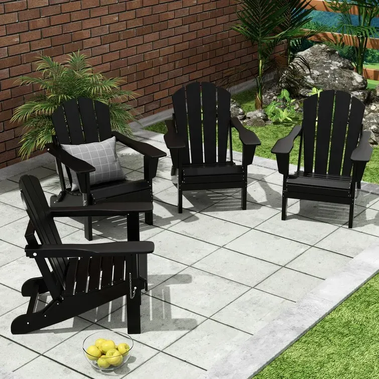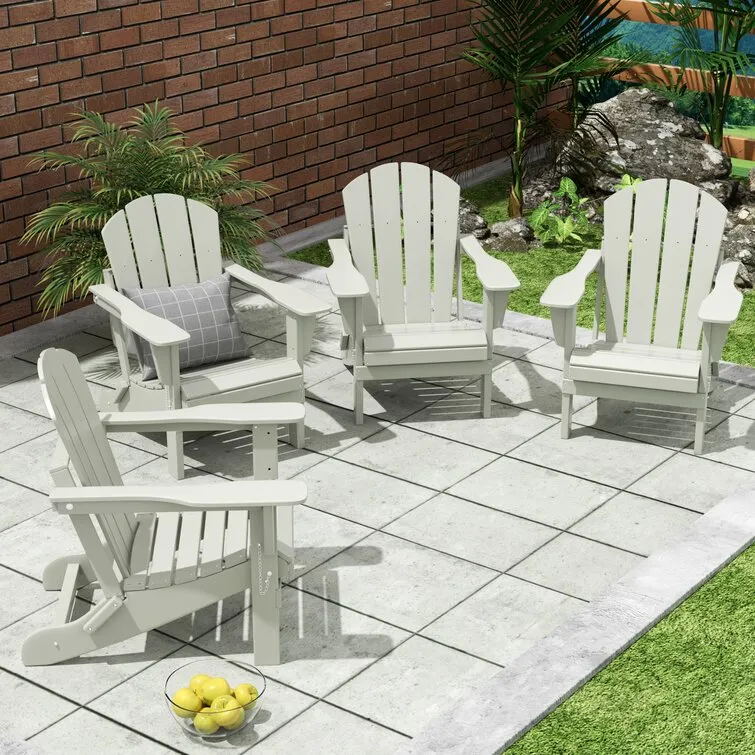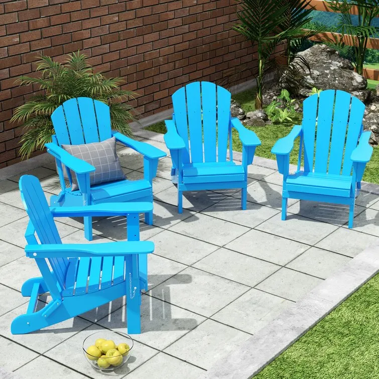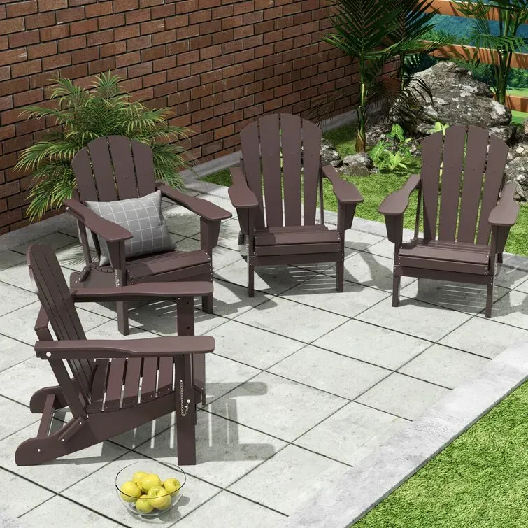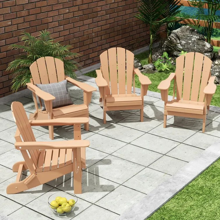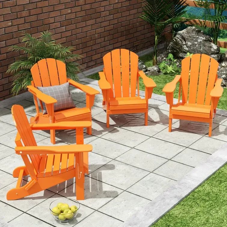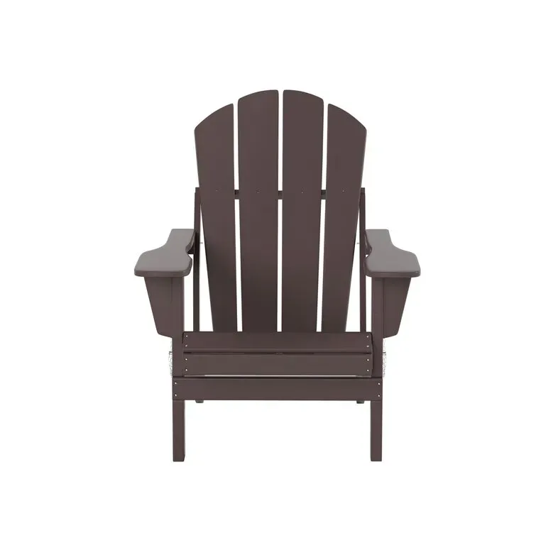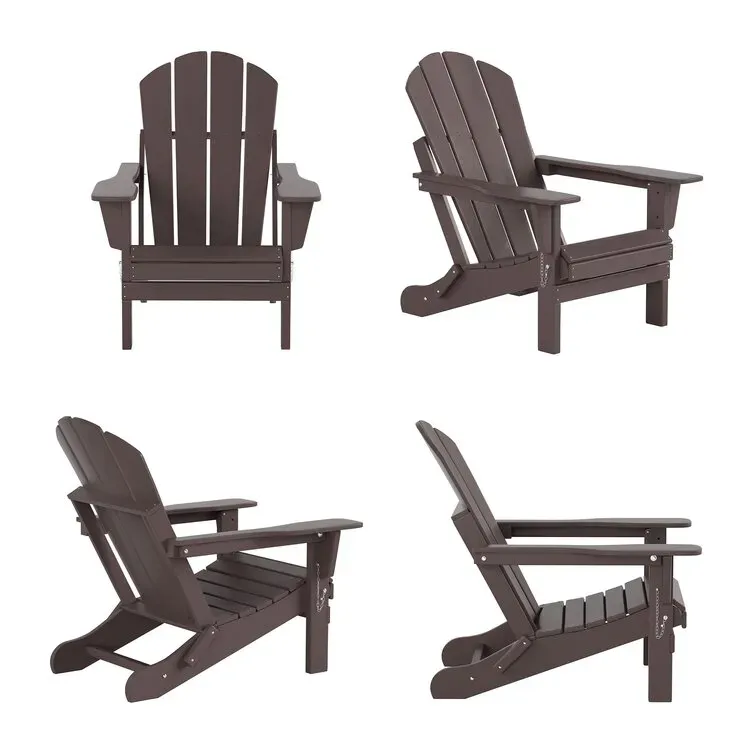 Unwind after a long week by relaxing on your patio with these gorgeous outdoor poly-Elland plastic folding adirondack chair. Between lounging with a good book and spending time with the company, this Adirondack chair set offers comfort and style for any experience. The poly material is perfectly complemented with a painted wood-inspired finish for a simple yet chic touch.