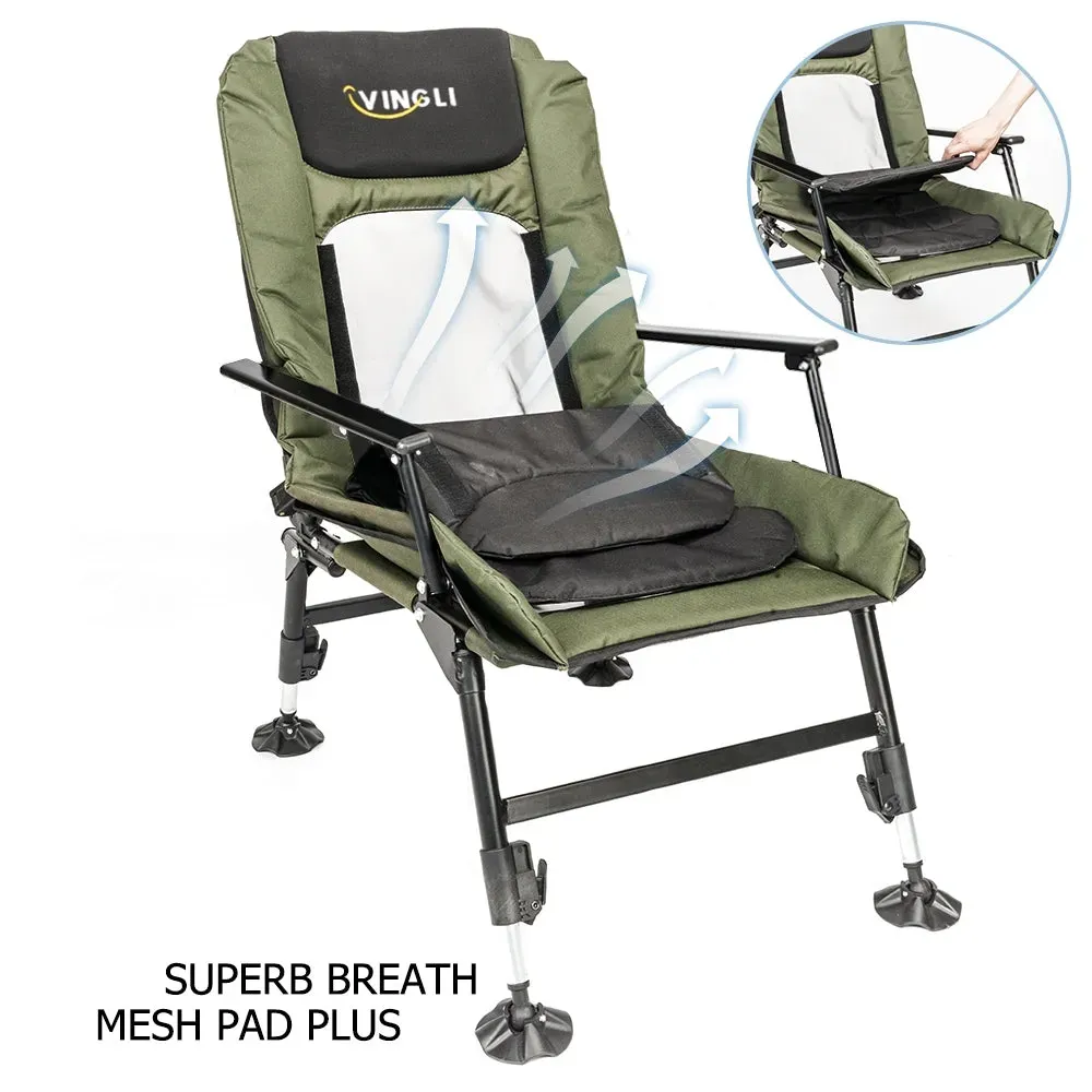 2.ADJUSTABLE LEG & PAW: Experience the ultimate in camping comfort with the VINGLI Camping Chair. Unlike other camp chairs, it boasts back padding, a sleek exterior design, and legs that can be adjusted for slope and extended for added stability. The swivel feet on the front legs ensure that the chair won't sink into soft soil, making it ideal for a variety of outdoor settings, from base camping to the beach. With its well-rounded features, the VINGLI Camping Chair is the perfect addition to any outdoor adventure.