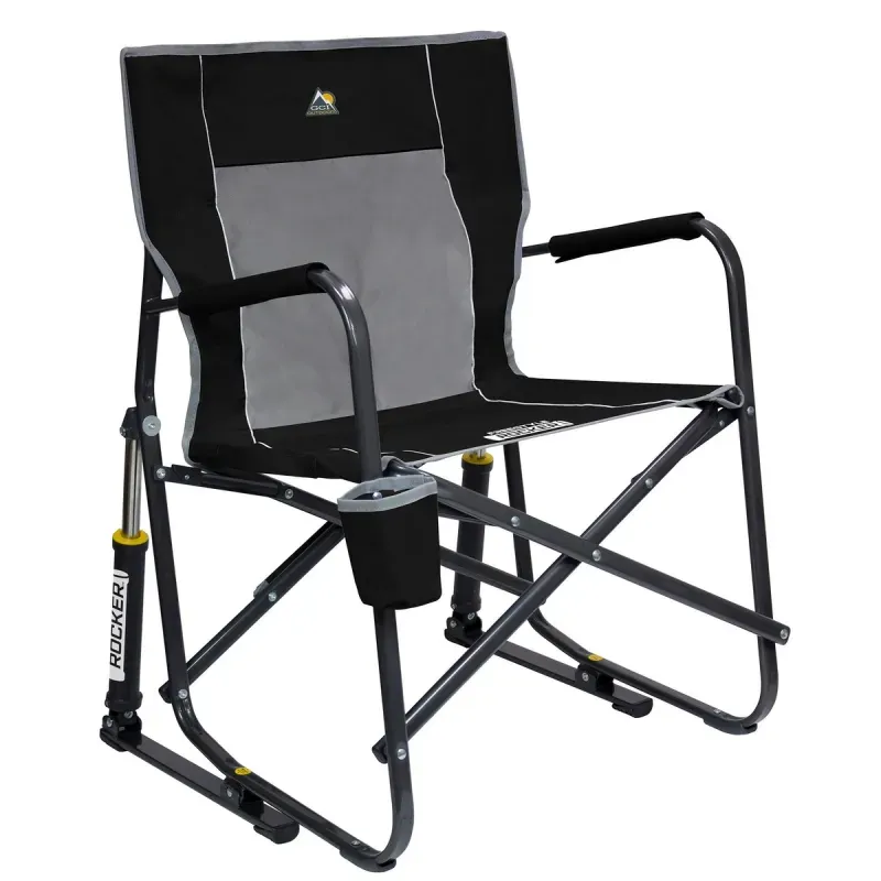 A camping rocking chair designed for the great outdoors! Easy to transport and set up, with smooth rocking on any surface, anywhere.