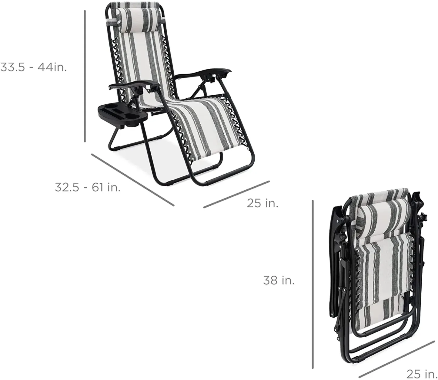 - REMOVABLE, ADJUSTABLE HEADRESTS: Includes a removable, padded headrest for an extra element of adjustable comfort; OPEN DIMENSIONS: 32.5'-61'(L) x 25'(W) x 33.5'-44'(H); FOLDED DIMENSIONS: 38'(L) x 25'(W) x 6'(H)